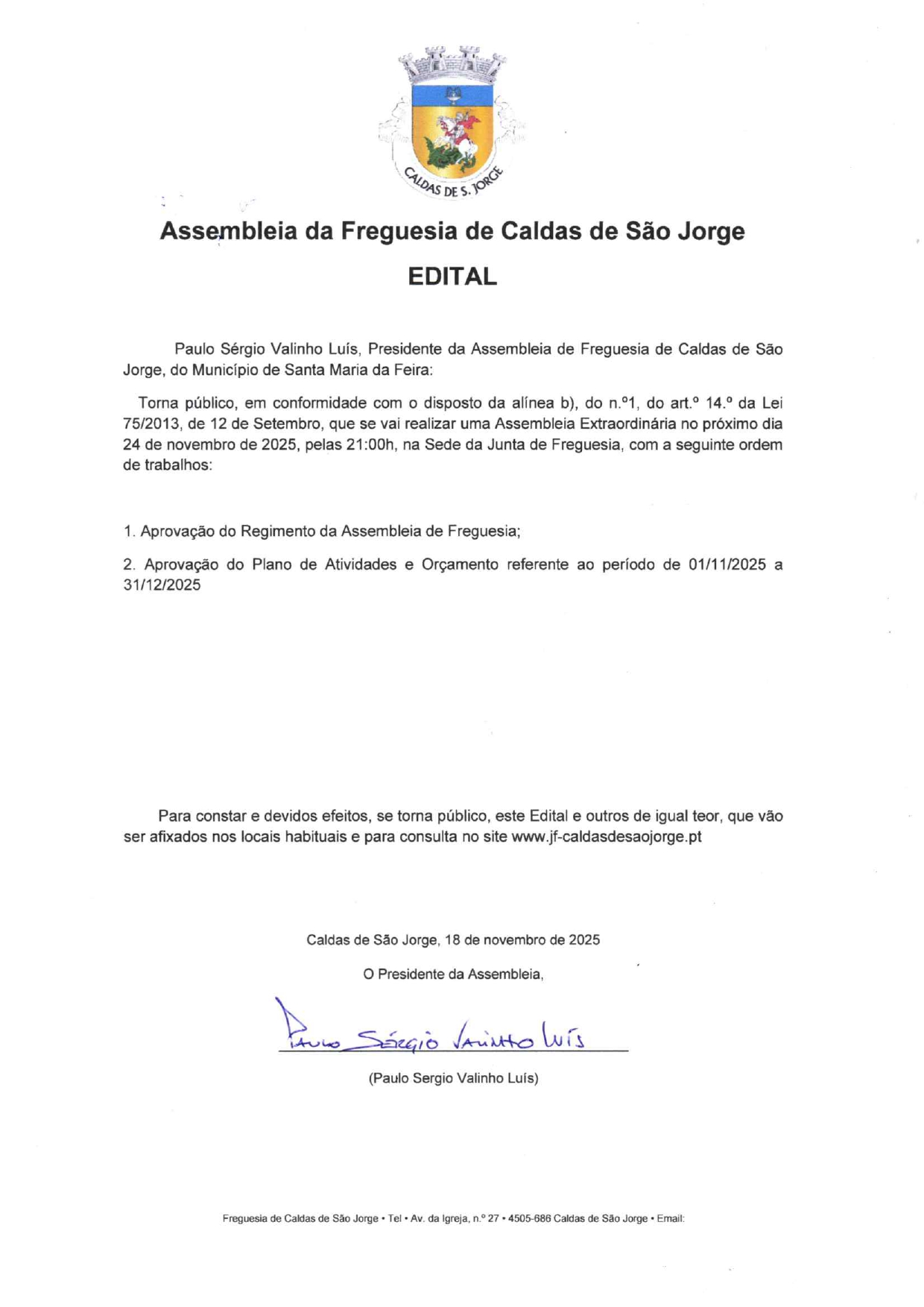 © 2026 Junta de Freguesia de Caldas de São Jorge. Todos os direitos reservados | Termos e Condições | * Chamada para a rede/móvel fixa nacional